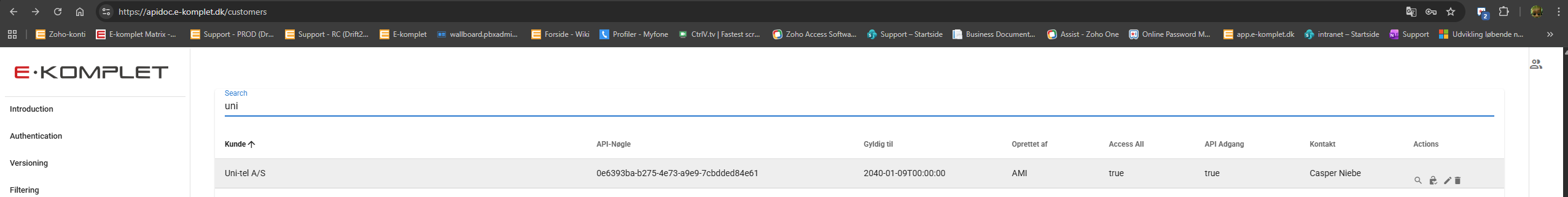 Hvis kunden ønsker en at Uni-tel får en API-adgang, så modtager vi direkte henvendelser fra kunderne.