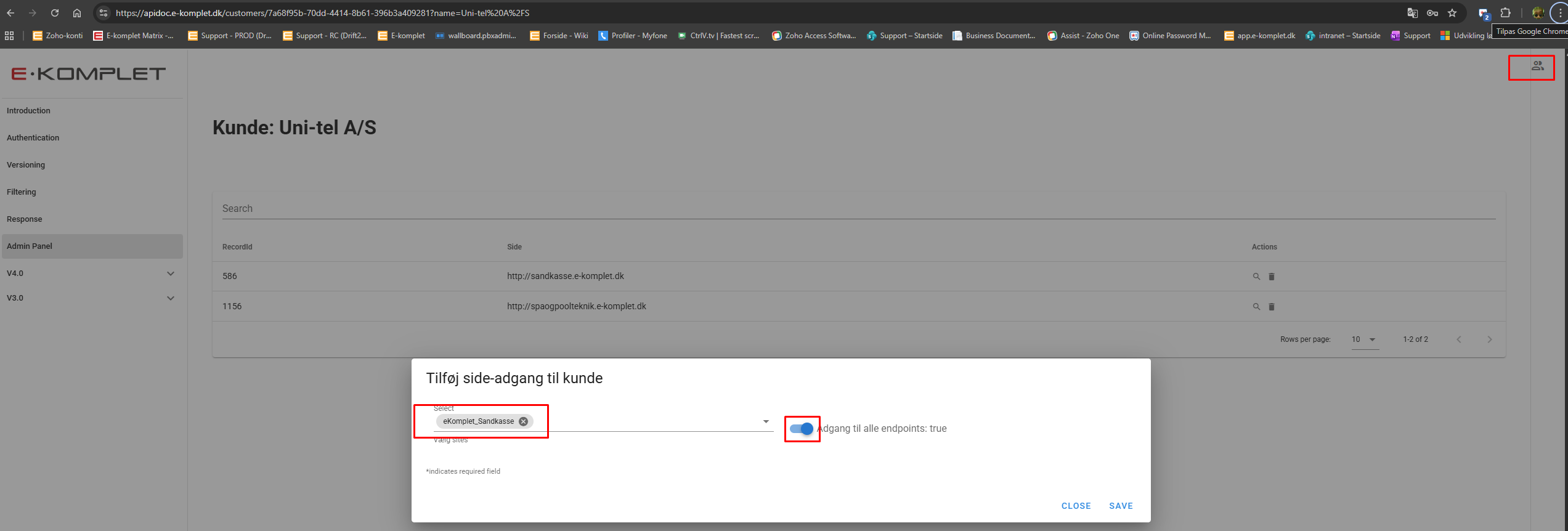 Vi har hermed givet Uni-tel en api adgang til jeres site.
